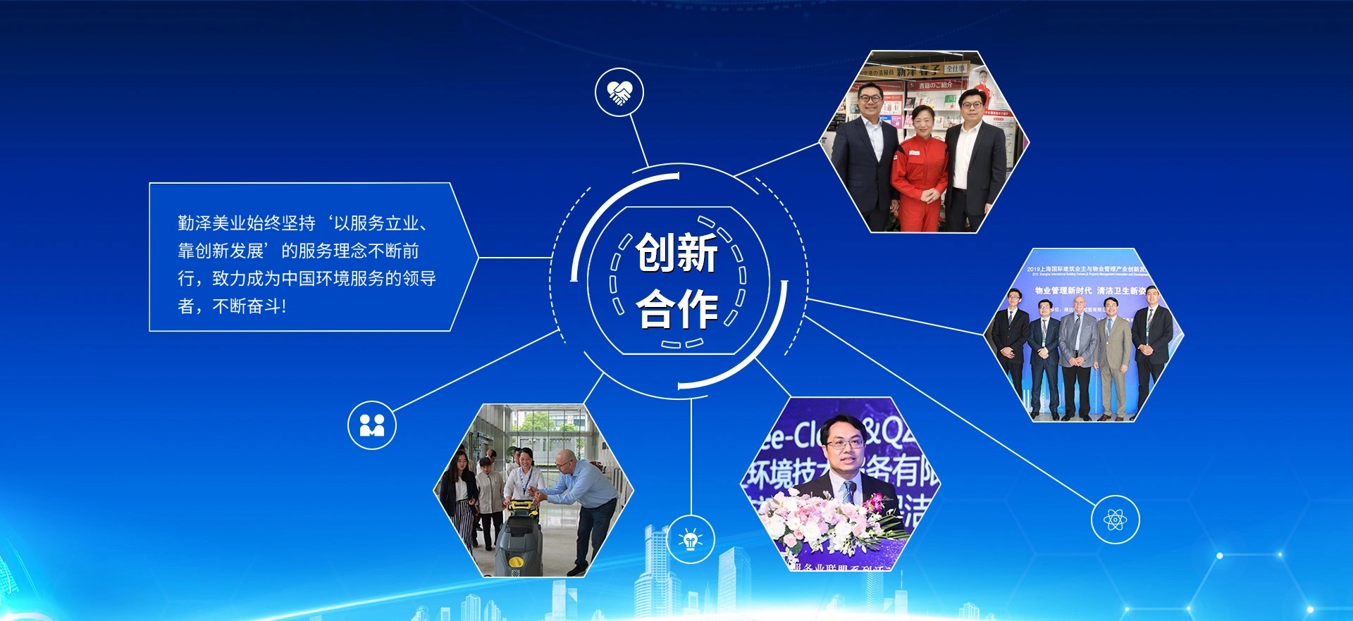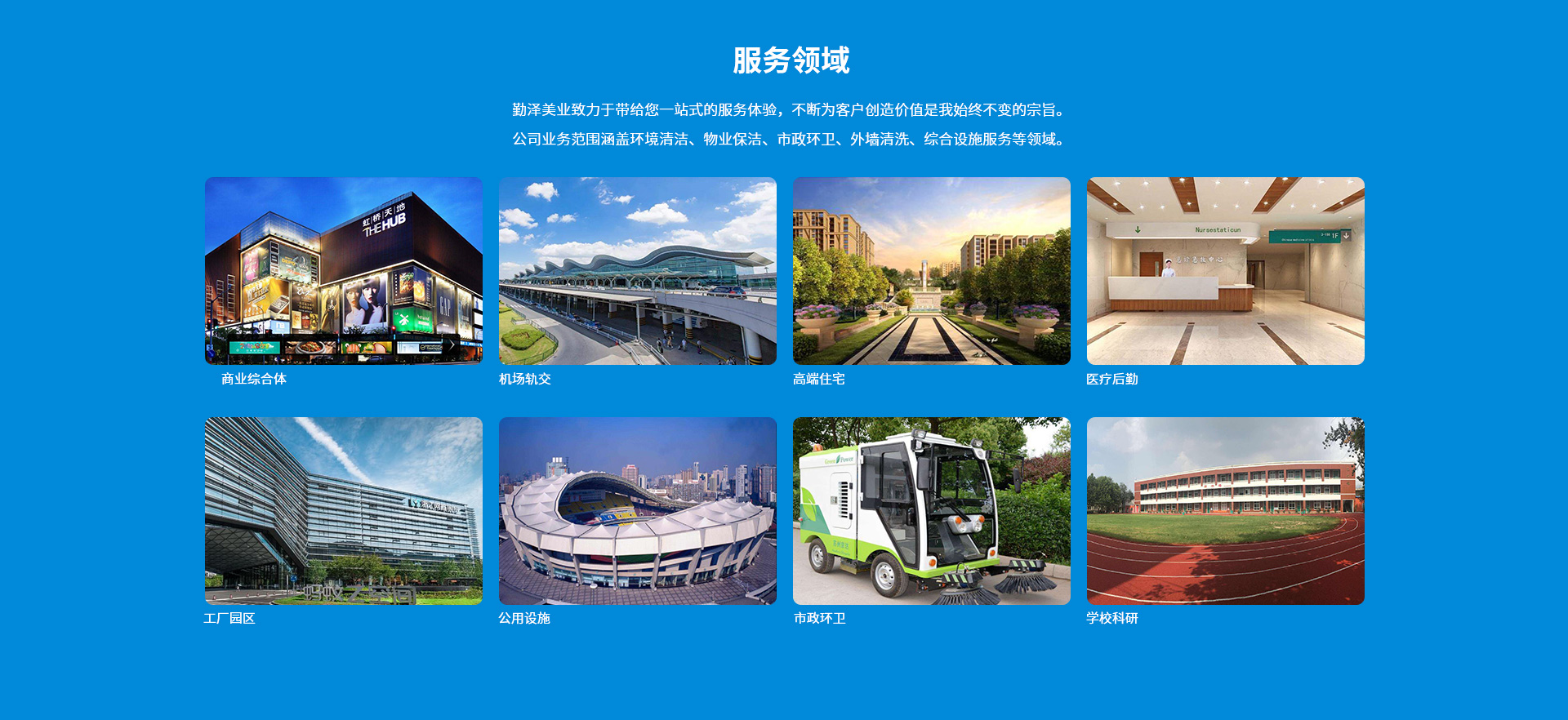公司致力于把“勤澤美業(yè)”培育成眾口皆碑、令人尊敬、具有長期價(jià)值的服務(wù)領(lǐng)袖品牌。業(yè)務(wù)范圍涵蓋環(huán)境清潔和綜合設(shè)施管理服務(wù),公司具備環(huán)衛(wèi)、保潔、石材等多個(gè)行業(yè)一級(jí)資質(zhì),致力成為中國環(huán)境服務(wù)行業(yè)的領(lǐng)導(dǎo)者。